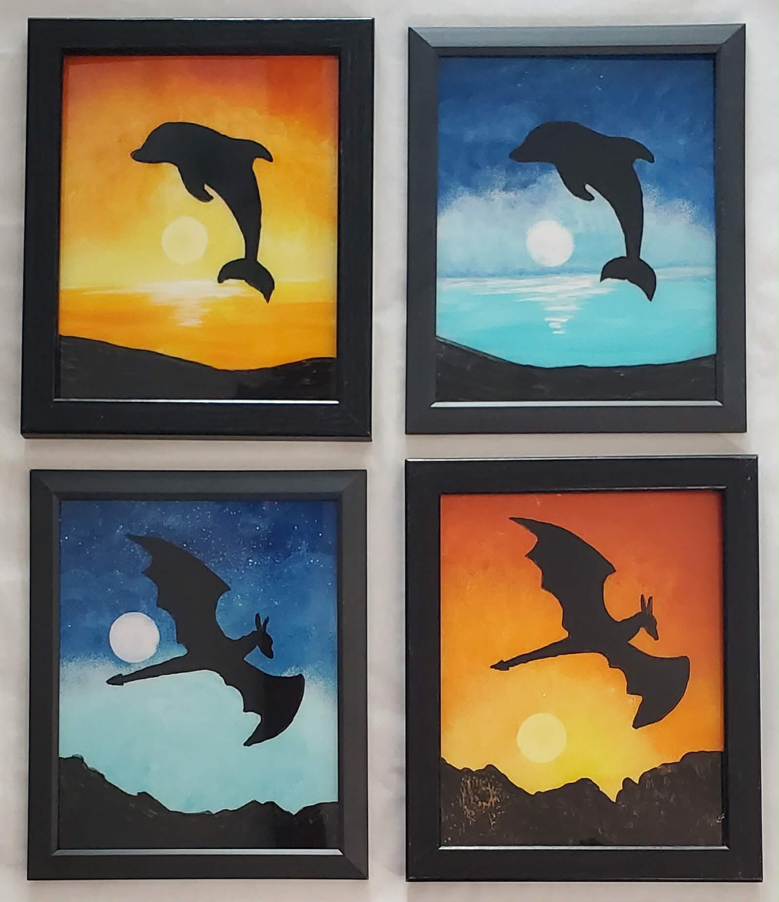 Join Tina Carchia to learn the process of painting in layers on plexi-glass using acrylic paints. With step-by-step instructions, you will have fun painting either a silhouetted "Dolphin" or "Dragon" against a very colorful background. You may choose to paint one painting together, or each paint your own work of art. We suggest you wear play clothes. All supplies included for this class!