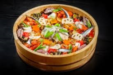 Originally a Sichuan dish, this dish uses diced tofu, proteins and vegetables eaten with or on top of cooked hot rice. Traditionally a spicy dish, it will be your choice not to make it spicy. Either way, it will boost your appetite and stamina.
