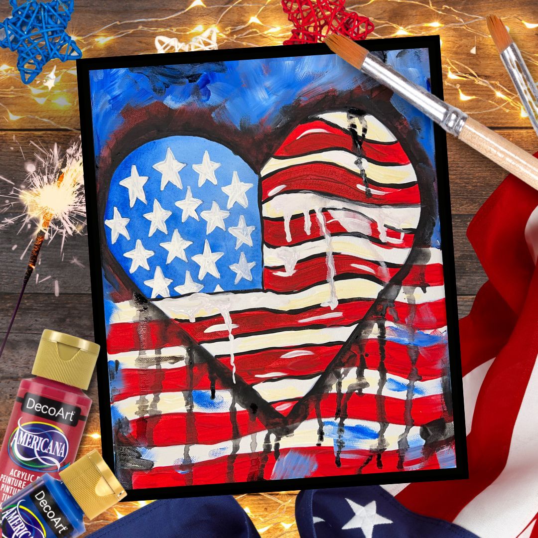 Celebrate the spirit of freedom with Heart of Freedom. Join us for a guided acrylic painting workshop where you’ll create a vibrant patriotic heart filled with stars and stripes. Using a pre-traced canvas, you can jump right into painting without worrying about drawing.